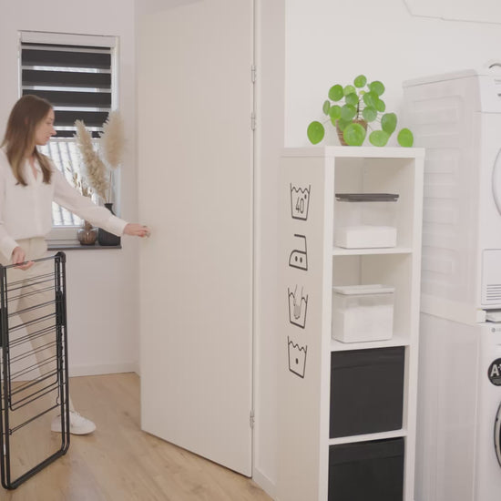 Save time and energy by drying your laundry naturally - and save space by hanging them on this smart rack! With this HangOn Drying Rack, with 20 metres of flexible drying space and room for 6 extra clothes hangers, you can dry your hanging trousers or flat dry delicate pieces anywhere in the house. And when all’s dried and done, fold it flat easily for compact storage. A great laundry rack!