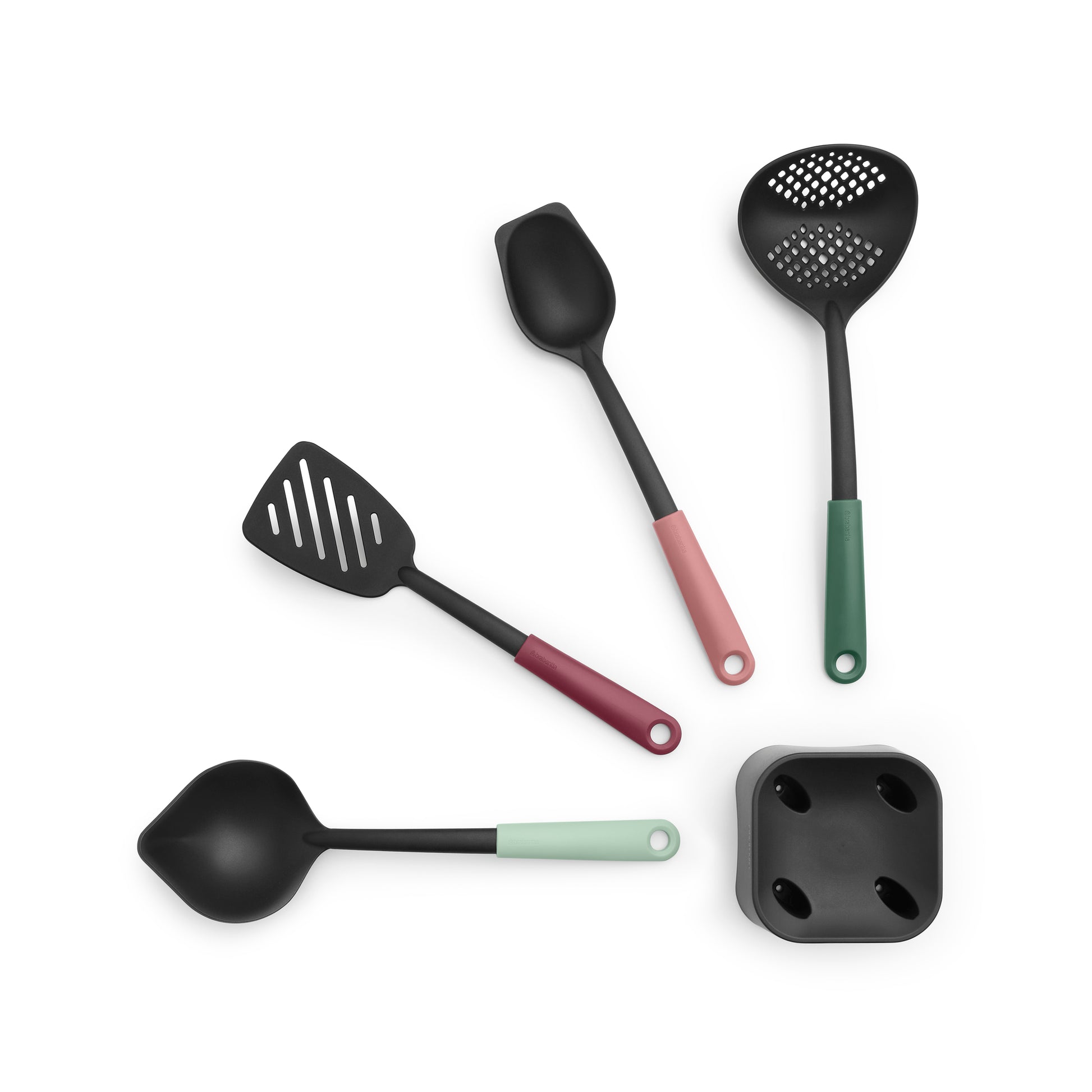 Tasty+ Cook&Serve Kitchen Utensils Set (Stand with Soup Ladle, Serving Spoon, Skimmer, Spatula with Fork)